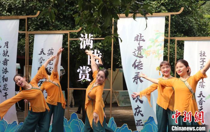 在《桂花雨》舞蹈表演中,2023“滿隴賞桂”非遺傳承活動(dòng)拉開(kāi)帷幕。 王題題 攝