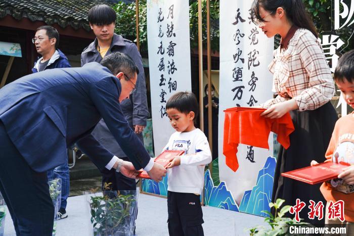 “認(rèn)領(lǐng)一顆桂花樹(shù)苗”證書(shū)頒發(fā)現(xiàn)場(chǎng)。 西湖街道 供圖