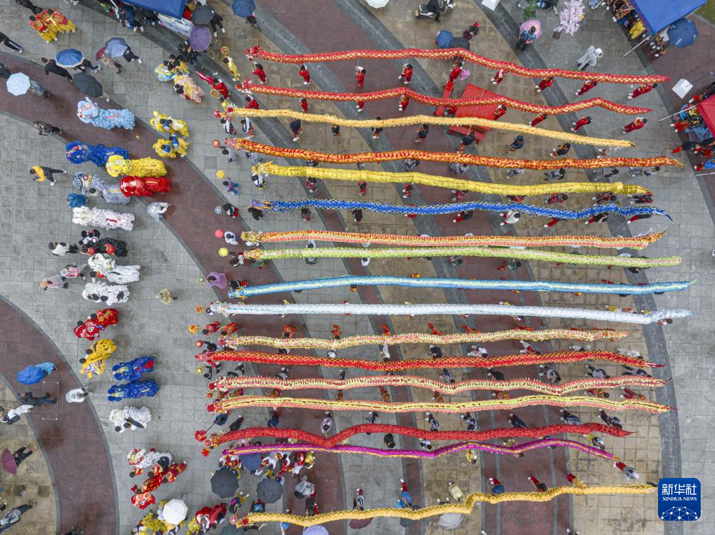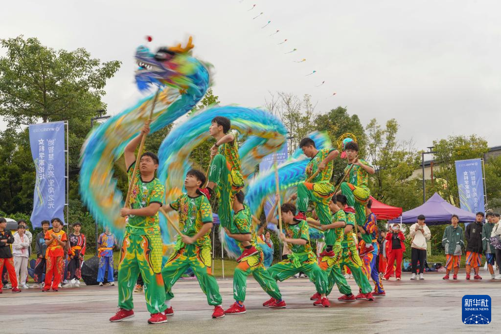 當(dāng)日,溫州市第八屆全民運動大會2023年舞龍舞獅精英賽在溫州市三垟濕地公園北廣場舉行。本次比賽分舞龍自選、舞獅自選、創(chuàng)意龍獅、彩帶龍等項目,設(shè)兒童組、青少年組和成年組三個組別,吸引來自溫州各地的舞龍舞獅隊參加。新華社發(fā)(蘇巧將攝)