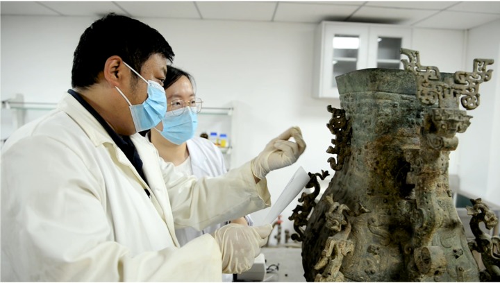 “隨著文物保護(hù)修復(fù)理念不斷進(jìn)步,現(xiàn)在不再單純強調(diào)干預(yù)性修復(fù),而是更加注重預(yù)防性保護(hù)?!倍虐舱f。像醫(yī)生對待“老病號”一樣,杜安對蓮鶴方壺也在進(jìn)行長期“隨診”,除了定期用技術(shù)手段進(jìn)行監(jiān)測外,只要有空,他都會去放置蓮鶴方壺的展柜旁溜達(dá)幾圈,“‘望聞問切’,得親眼看看才放心。”