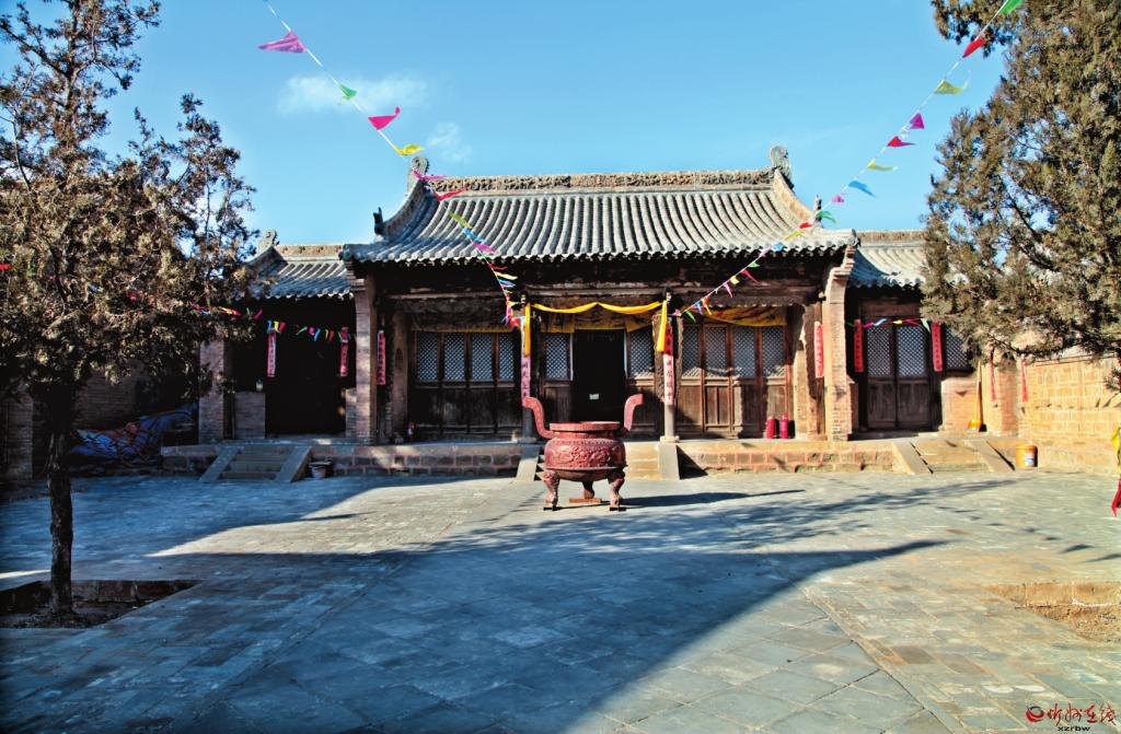 關(guān)帝廟:現(xiàn)存建筑有磚砌山門1座,面寬一間,硬山頂;左側(cè)鐘樓,基座石砌,中有窯洞,上部木構(gòu),硬山頂。正殿為關(guān)帝殿,面寬三間,進(jìn)深三椽,硬山頂,斗拱一斗二升交麻葉,耍頭云形,龍首,象鼻,三間均安格扇門;殿內(nèi)合榻,木雕水波形,神龕內(nèi)供關(guān)云長;殿內(nèi)東西壁滿繪清代三國演義壁畫48幅,共計(jì)31平方米。正殿左右各有一間小屋,進(jìn)深二椽,硬山頂,格扇門,格扇窗,為僧舍。院東小殿一間,硬山頂,斗拱一斗二升交麻葉。