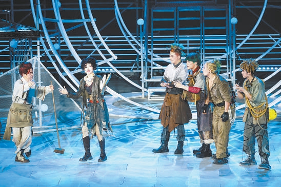 “劇中有句話叫‘真愛無坦途’?!标P(guān)渤說,它不僅在莎翁寫下的精巧故事中,也外化在了這版《仲夏夜之夢(mèng)》的肢體表達(dá)上,“我們?cè)黾恿撕芏嘧?、跑、摔、爬的?dòng)作,同時(shí),在這樣的環(huán)境里,演員們的表演必須比平時(shí)放大夸張。”舞臺(tái)呈現(xiàn)上,一些著意設(shè)計(jì)的坡道、臺(tái)階也增強(qiáng)了追尋真愛的“坎坷”感,舞美設(shè)計(jì)張鹍鵬以錯(cuò)落有致框架結(jié)構(gòu)勾勒出城邦、森林的虛實(shí)場景,構(gòu)筑起似真非真的表演空間,帶來了封閉式劇場無法提供的戲劇體驗(yàn)。
