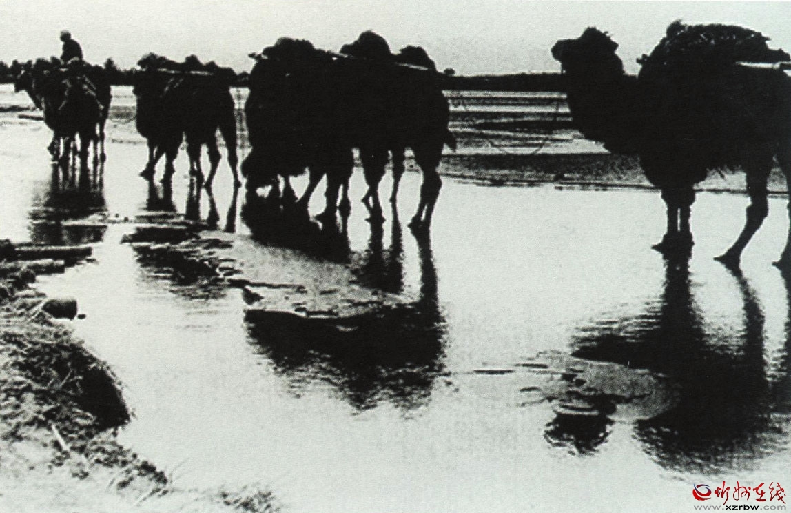 滹沱河上運(yùn)輸?shù)男蒙恬勱?duì) 據(jù)《忻州記憶》畫(huà)冊(cè)