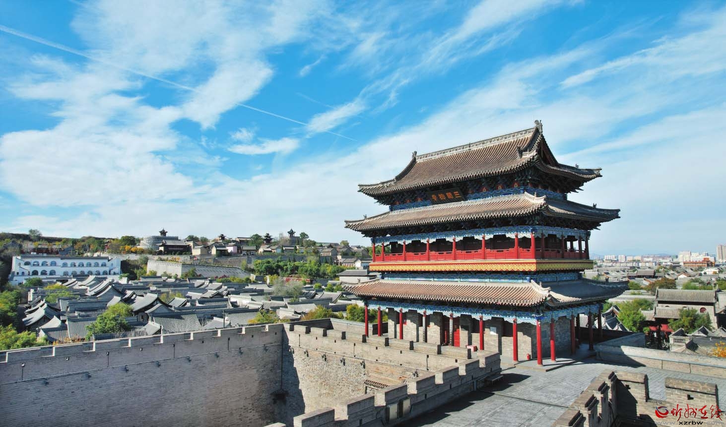 四門(mén)皆重建于明萬(wàn)歷二十四年(1596年)。南門(mén)“景賢門(mén)”,城樓面闊七間,進(jìn)深四間,重檐歇山頂,四角飛檐,樓梯三層,構(gòu)思精巧,樓內(nèi)無(wú)柱,三層檐下正中懸掛“三關(guān)總要”匾額。東門(mén)“永豐門(mén)”,城樓匾額“獻(xiàn)佳合北”。東門(mén)到南北大街是東大街。西門(mén)“新興門(mén)”,城樓匾額“九峰雄峙”。西門(mén)通南北大街,古城原有略顯彎曲的西大街。