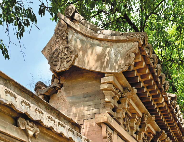 ▲保德康家灘康氏民居的硬山頂磚雕懸魚(yú),菱形蝙蝠、蓮花、銅錢圖案。