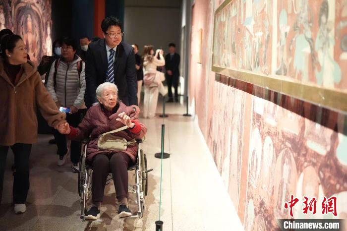 “墨韻文脈——甘肅絲路藝術珍品展”3月11日在中國美術館開幕,圖為藝術家常沙娜在現(xiàn)場參觀。 史春陽 攝