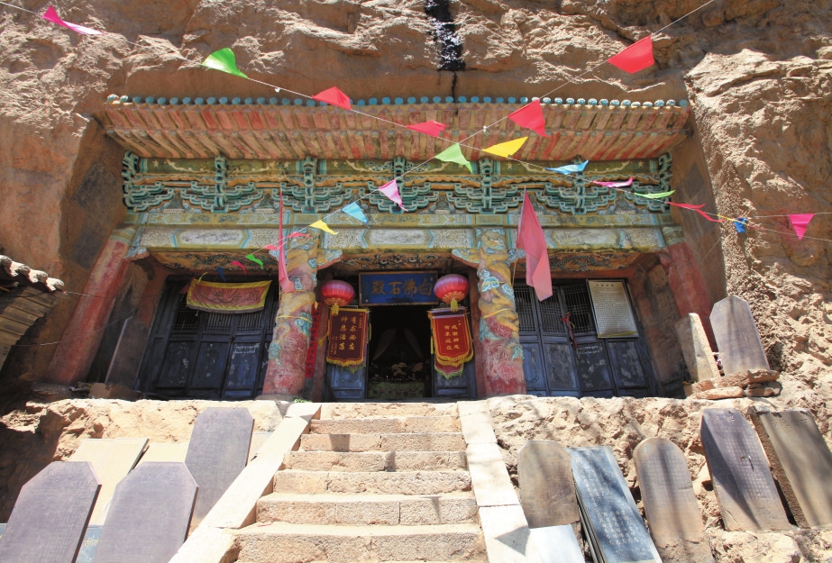 系舟山絕壁間,一座石殿靜立。殿內(nèi)后壁,一位石雕僧人正探身欲出——他身披袈裟,手提陶壺,右腿邁出門檻,雙眼微瞇含笑。這座“僧人半掩門”雕像已在此定格四百八十余年,以永恒的姿態(tài)迎接著每一位探訪者,引人遐想門后是否還有延伸的禪院。這一匠心獨(dú)運(yùn)的雕刻,正是明代石窟藝術(shù)杰作白佛堂最靈動(dòng)的注腳。