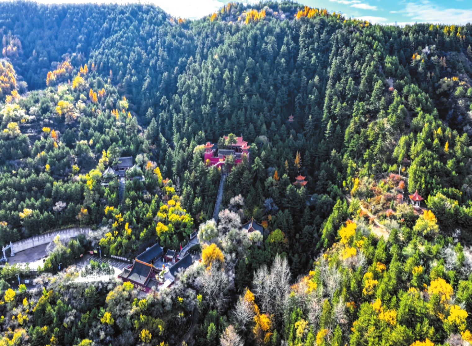 山林間宏大的廟宇建筑群始建于北魏時期,憑借清幽秀麗的自然風光和深厚的文化底蘊,吸引了眾多高僧來此傳經(jīng)布道。隨著佛教文化的發(fā)展,與之相關(guān)的建筑藝術(shù)、雕塑藝術(shù)、壁畫藝術(shù)歷代都有發(fā)展,可惜大部分毀于戰(zhàn)火。1992年開始重建,集儒釋道于一體的廟宇群規(guī)模宏大。