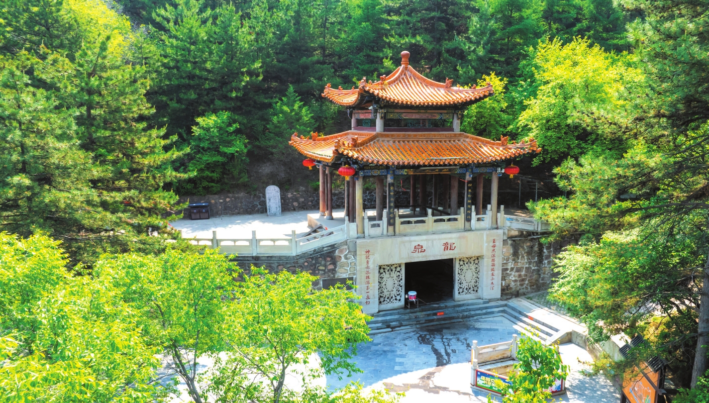 山有水而媚,土得水而沃。從大雄寶殿出來,沿著西門旁一條小道不遠處,就是那片號稱“天柱松濤”的松林了。只見樹干筆直,枝條蒼勁,直指云霄,林間松脂飄香,氣息悠然。人還在松林中流連尋芳,遠遠就能聽到聞名已久的“天柱龍泉”在流淌。龍泉位于景區(qū)廟群西南的龍泉閣,作為“靜樂舊八景”之首的“天柱龍泉”,又名“犬舐泉”,《魏書》載:“爾朱榮高祖羽健居北秀容川。會有狗舐地,因而穿之,得甘泉,故名?!毕鄠魅谐錾颀垼拭埲?。高山出泉是為奇觀,泉水清澈見底,旱不涸、澇不盈,夏飲清神,冬飲沁心。有“天柱圣境啟心智,龍泉奇觀令神怡”之頌。此泉水富含多種礦物質(zhì)和微量元素,是地地道道的“天然級礦泉水”。近幾年上山鍛煉的居民很多,人們上山時自帶裝水工具,攜泉水以做飯和飲用,期盼著龍泉水能給人帶來健康和好運。站在龍泉邊,總能感受到一陣陣濕潤的水氣撲面而來,甚至像風一樣輕繞著周身,使人置身于自然美景中不愿離開,連呼吸也變得無比暢快起來。