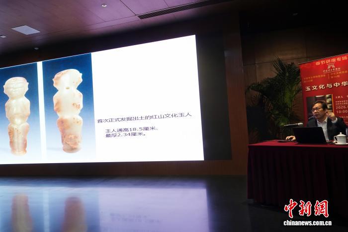 2月22日,中國考古博物館春節(jié)講座專場,劉國祥研究員作“玉文化與中華文明”主題學(xué)術(shù)報告,介紹紅山文化玉人。中新網(wǎng)記者 孫自法 攝