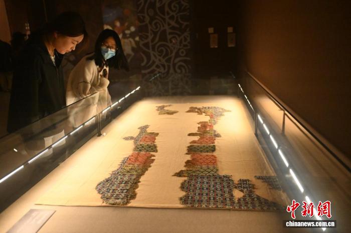 4月8日,在位于甘肅省蘭州市的甘肅簡牘博物館,觀眾參觀“錦繡華裳”巴州博物館藏古代服飾精品展。中新社記者 李亞龍 攝