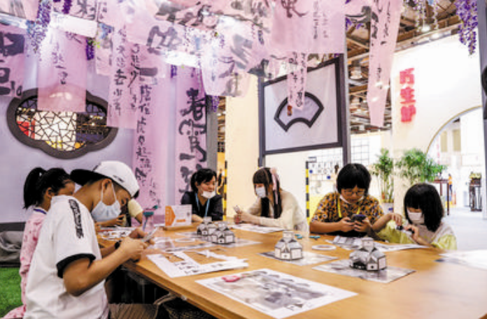 7月31日,2020第九屆中國(guó)蘇州文化創(chuàng)意設(shè)計(jì)產(chǎn)業(yè)交易博覽會(huì)在蘇州國(guó)際博覽中心開幕。本次展會(huì)為期3天,以“新設(shè)計(jì)·新生活·新天堂”為主題,設(shè)置“創(chuàng)·設(shè)計(jì)”“承·工藝”“融·文旅”“趨·未來”四大展區(qū)、43個(gè)主題展館,吸引全國(guó)400余家參展商參加,展出各類創(chuàng)意產(chǎn)品2萬余件。圖為觀眾在蘇州創(chuàng)博會(huì)蘇博展區(qū)制作手工折紙。新華社 記者楊磊 攝