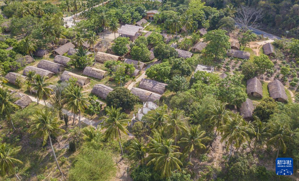 4月28日在海南省東方市白查村拍攝的黎族船型屋(無(wú)人機(jī)照片)。
