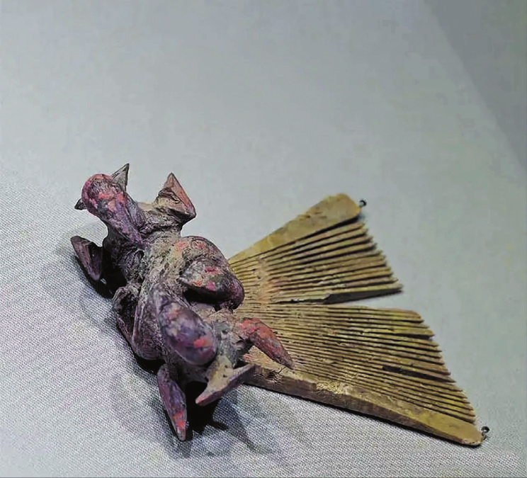 從北白鵝墓地500多件文物中精選出來(lái)的骨梳、銅盒、飾品等,大小不一、形態(tài)各異,浸潤(rùn)著時(shí)光的痕跡。銅盒里面的膏狀物經(jīng)檢測(cè)為化妝品,古代女性?shī)y容有三種顏色:白粉覆臉、黛黑描眉畫眼、朱砂或胭脂涂抹口紅。從骨梳來(lái)看女性裝飾,春秋時(shí)期已經(jīng)有骨笄等束發(fā)工具,沈從文編的《中國(guó)古代服飾研究》中也提及女子成年“及笄”。臨汾隰縣瓦窯坡墓地出土的東周骨梳,上下兩面榫卯對(duì)應(yīng),骨梳背上木質(zhì)榫接左右對(duì)稱有一對(duì)張開(kāi)翅膀的鳥(niǎo)。周代服飾主要為上衣下裳、上衣右衽,衣服材質(zhì)多是皮毛、麻、葛等。此外東周時(shí)期,青銅鏡制作工藝日趨精美,使用頗為普遍。綜合這些元素,得以想象鏡中的燕姬著禮服、袍、裙、冠飾、玉珠等,或見(jiàn)烏黑的發(fā)髻露出一對(duì)展翅欲飛的鳥(niǎo)兒,顯現(xiàn)古代女性別致的嫵媚。