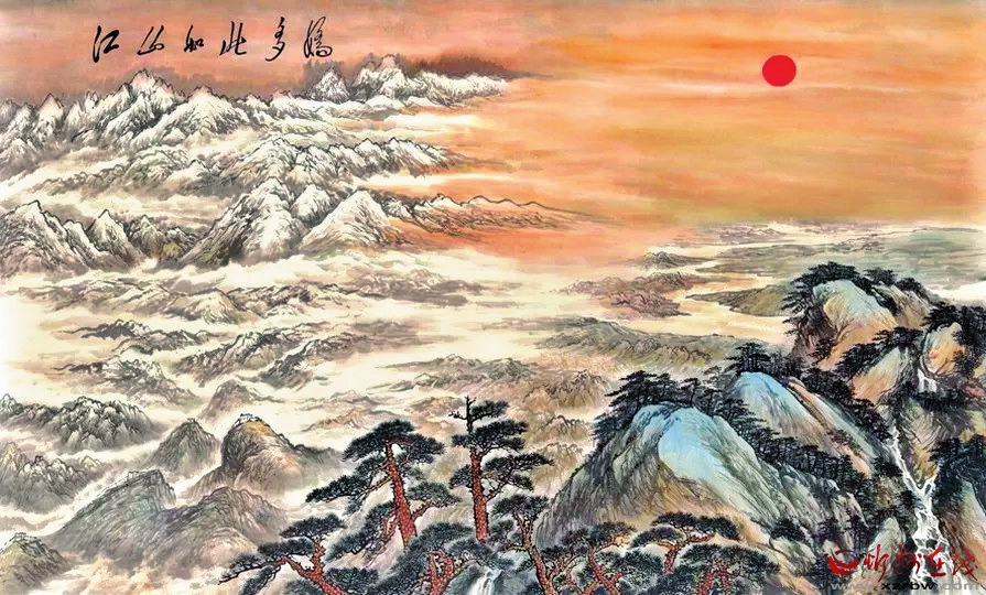 近現(xiàn)代以來,隨著人們多維的欣賞能力和畫家對自然觀察能力的深入,雪景山水畫在內(nèi)容方面有了顯著變化。這種轉(zhuǎn)型雖仍以“師造化”為基礎(chǔ),但西方繪畫理論的引進(jìn),透視、光影等要素的借鑒,使繪畫技法表現(xiàn)出新的發(fā)展趨勢。中國雪景山水畫在新歷史時期,順應(yīng)發(fā)展契機(jī),得到振興。20世紀(jì)初,陶冷月便致力于中西融合的探索,將圓月、雪山、淡云等和諧統(tǒng)一在一片冷逸空靈的詩意世界中。他的《雪月山水圖》中,水面因月光反射閃爍著波光,這也是他營造意境的獨(dú)特手法,使之更為靈動。傅抱石一改明清輕柔疏淡的氣息,彰顯民族振奮的活躍力。他與關(guān)山月合作繪成的《江山如此多嬌》,將詩詞中“北國風(fēng)光,千里冰封,萬里雪飄”的壯闊場景表現(xiàn)得淋漓盡致。