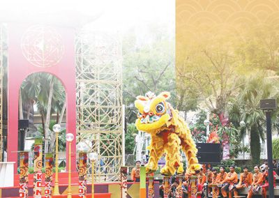 2月3日,在印尼雅加達(dá)翠貝卡廣場上,人們舉行舞獅表演喜迎新春。本報記者 曹師韻攝