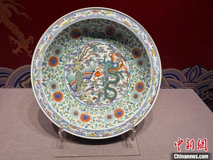 沈陽(yáng)故宮院藏國(guó)家一級(jí)文物“清雍正斗彩龍鳳紋大盤(pán)”。記者 韓宏攝