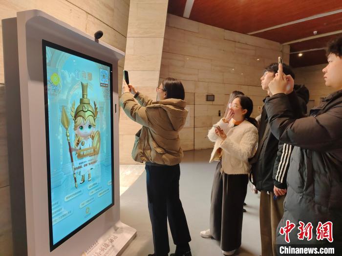 觀眾掃碼識別,在線體驗(yàn)數(shù)智人“雅典娜”。成都金沙遺址博物館供圖