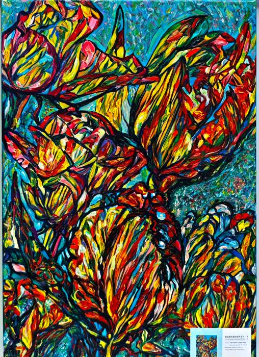 此次分享會(huì)還展出了孫寬的油畫作品郁金香系列十余幅。她的油畫藝術(shù)風(fēng)格,以強(qiáng)烈的色彩和抒情性著稱,受現(xiàn)代派,后現(xiàn)代派繪畫影響,擅長通過冷色調(diào),尤其是藍(lán)色表達(dá)情感,作品如《落地生根》《藍(lán)色突圍》《核》等被評(píng)為詩性繪畫。
