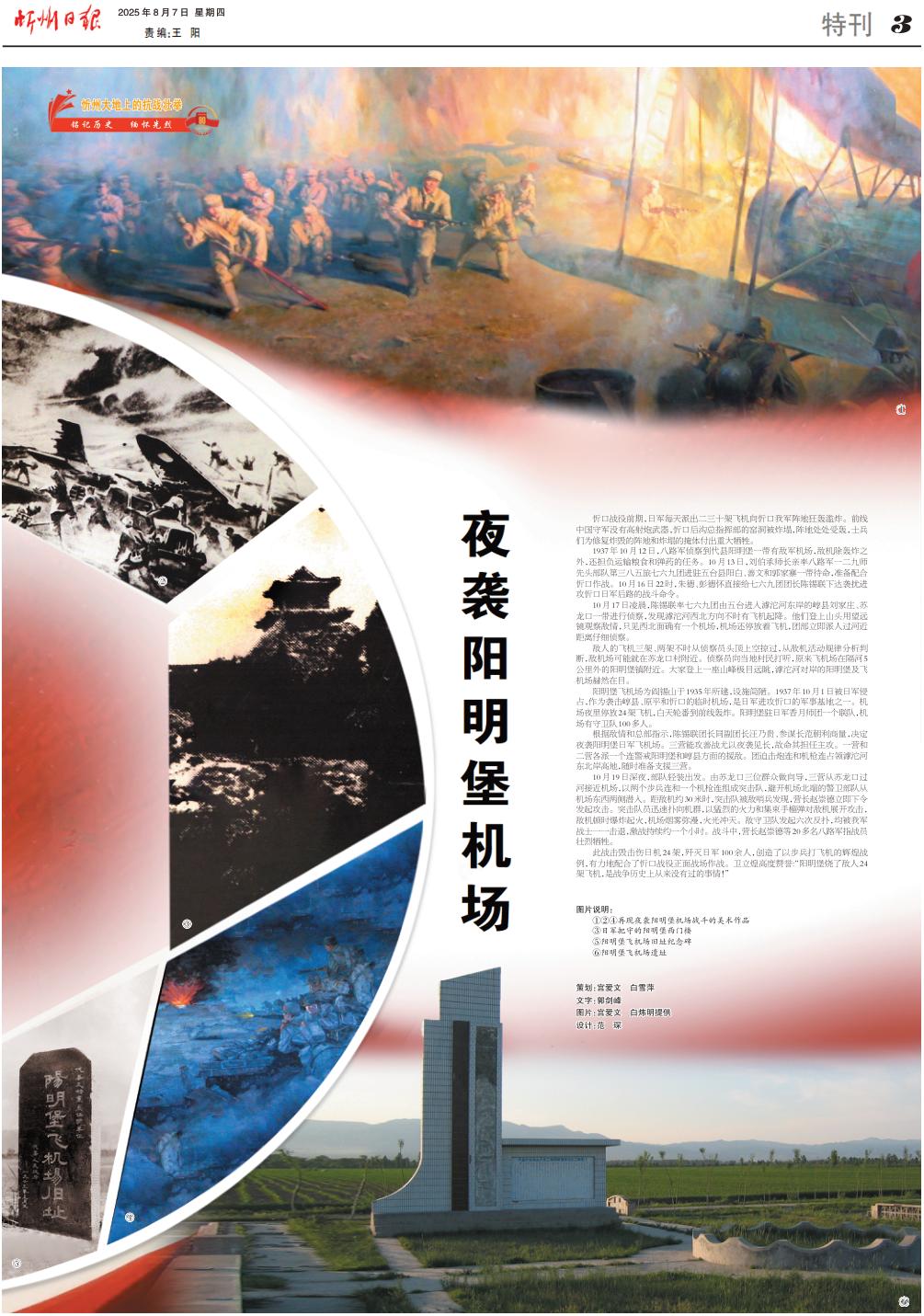 陽(yáng)明堡飛機(jī)場(chǎng)為閻錫山于1935年所建,設(shè)施簡(jiǎn)陋。1937年10月1日被日軍侵占,作為襲擊崞縣、原平和忻口的臨時(shí)機(jī)場(chǎng),是日軍進(jìn)攻忻口的軍事基地之一。機(jī)場(chǎng)夜里停放24架飛機(jī),白天輪番到前線轟炸。陽(yáng)明堡駐日軍香月師團(tuán)一個(gè)聯(lián)隊(duì),機(jī)場(chǎng)有守衛(wèi)隊(duì)100多人。