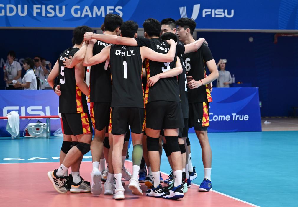 在成都大運(yùn)會(huì)男排小組賽C組的比賽中,中國隊(duì)以25:20、25:18和25:9擊敗烏克蘭隊(duì),贏得兩連勝的同時(shí)提前晉級(jí)八強(qiáng)。