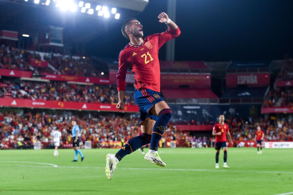 西班牙隊(duì)上一輪以7:1橫掃格魯吉亞隊(duì),本次回歸主場(chǎng)繼續(xù)進(jìn)球表演。新星加維第18分鐘為“斗牛士”力拔頭籌,他的巴薩隊(duì)友弗·桑托斯則在下半場(chǎng)替補(bǔ)登場(chǎng)后連下兩城。兩連勝過(guò)后比同組對(duì)手都少賽一場(chǎng)的西班牙隊(duì)以3勝1負(fù)積9分暫居第二,落后五連勝的蘇格蘭隊(duì)6分。