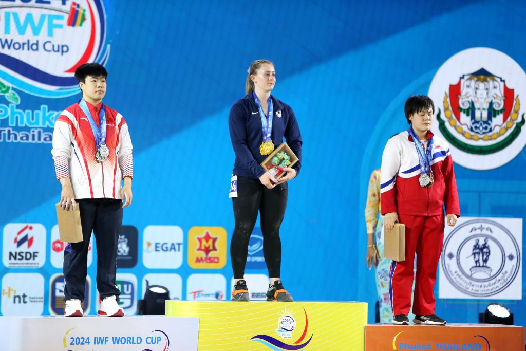 全場(chǎng)比賽里夫斯6次試舉全部成功。她挺舉第三次試舉150公斤成功,排名第一,并以268公斤的總成績奪金。廖桂芳挺舉開把149公斤全場(chǎng)最重,并在第二次試舉時(shí)成功。她第三次試舉154公斤時(shí)未能完成,挺舉排名第二,并以抓舉115公斤、挺舉149公斤、總成績264公斤拿到總成績銀牌。