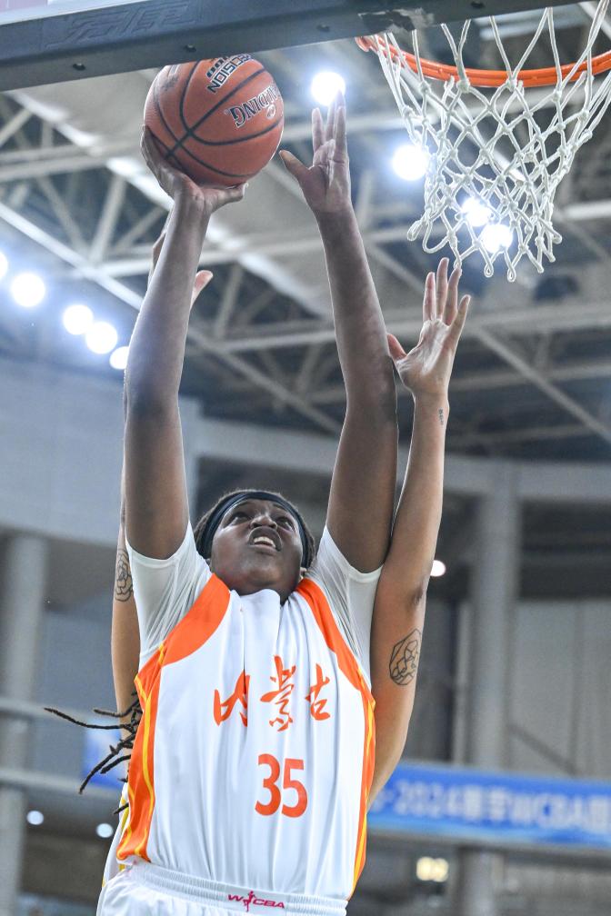 4月11日,內(nèi)蒙古隊(duì)球員瓊斯在比賽中上籃。新華社記者 連振 攝