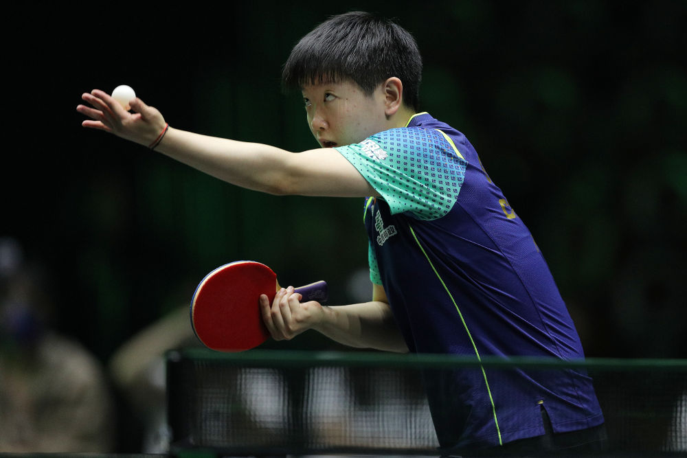 5月5日,中國隊選手孫穎莎在比賽中發(fā)球,她在女單首輪比賽中3:0戰(zhàn)勝中國臺北隊選手劉馨尹,晉級下一輪。新華社發(fā)(WTT世界乒聯(lián)供圖)
