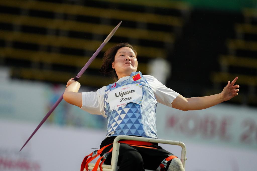 5月19日,鄒莉娟在女子標(biāo)槍F34級別決賽中。新華社記者 張笑宇 攝