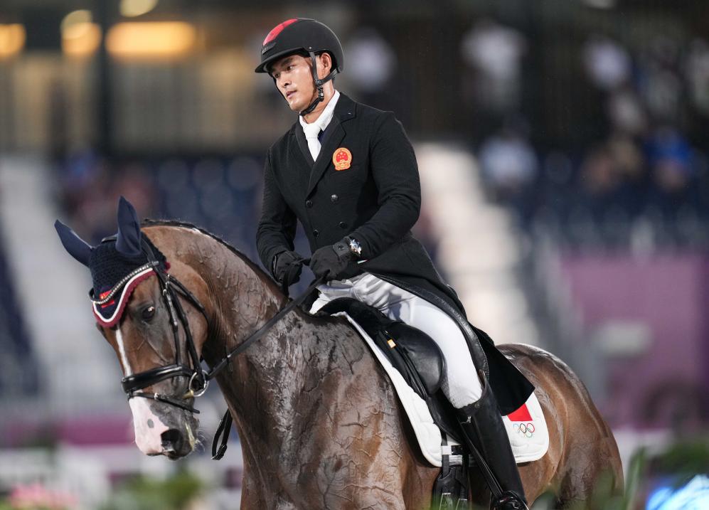 2021年7月30日,中國選手孫華東在東京奧運會馬術(shù)三項賽盛裝舞步首日比賽中。新華社記者 朱崢 攝
