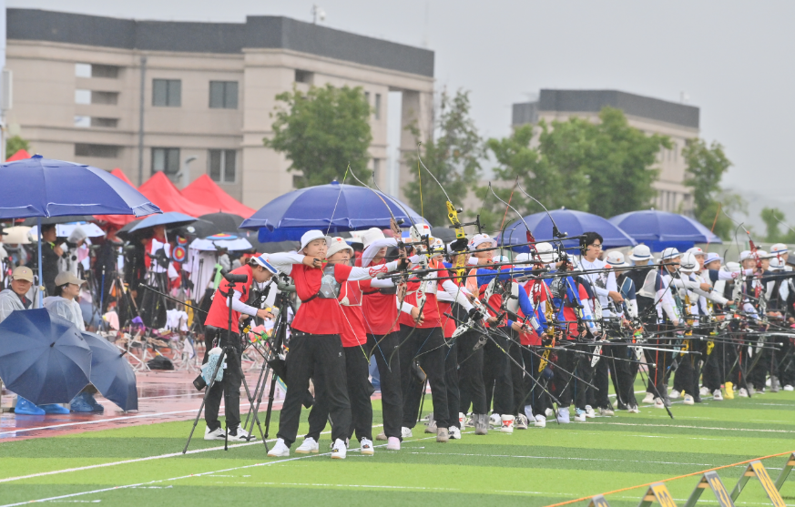 本次比賽共設(shè)置男子反曲弓個(gè)人、女子反曲弓個(gè)人、男子反曲弓團(tuán)體、女子反曲弓團(tuán)體、反曲弓混合團(tuán)體5個(gè)競(jìng)賽項(xiàng)目。當(dāng)日比賽中,江蘇隊(duì)、天津1隊(duì)、吉林1隊(duì)暫列女子反曲弓團(tuán)體前三名,山東隊(duì)、上海1隊(duì)、廣東隊(duì)暫列男子反曲弓團(tuán)體前三名。