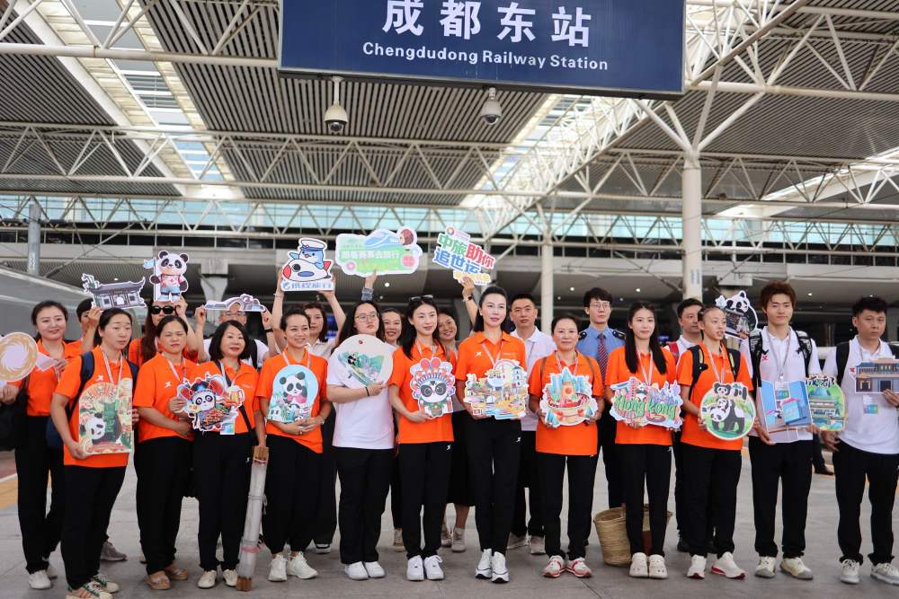 6日下午,搭載著四川籍奧運冠軍、川劇藝術(shù)家、非遺傳承人、川菜企業(yè)主、博物館金牌講解員等的“世運蓉港行”主題列車駛?cè)胂愀畚骶琵堈尽?/p>