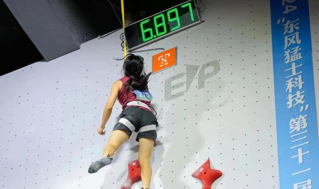 男子半決賽中,剛剛在世青賽中摘金的趙一程對陣世界杯金牌得主、貴州隊選手龍見國。15歲的小將爬出4秒95強勢晉級,這一成績在巴黎奧運會上也相當有競爭力。