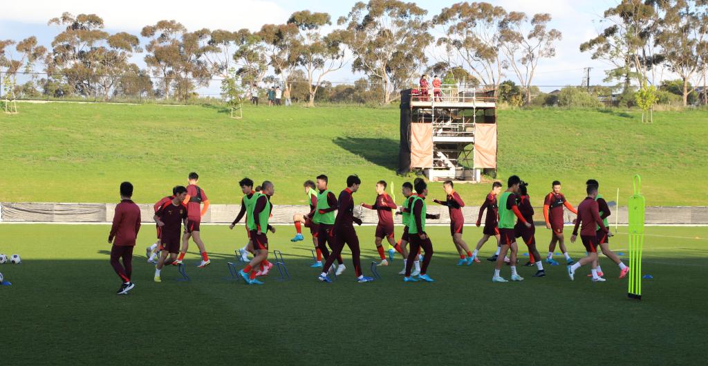 當(dāng)天的訓(xùn)練場距離中國隊(duì)下榻的酒店有10公里,訓(xùn)練從下午六點(diǎn)開始,持續(xù)了大約一個(gè)半小時(shí)。與前一天下午抵達(dá)后進(jìn)行的恢復(fù)性訓(xùn)練不同,主教練伊萬科維奇帶領(lǐng)球隊(duì)按照比賽要求,進(jìn)行了排兵布陣和戰(zhàn)術(shù)演練。