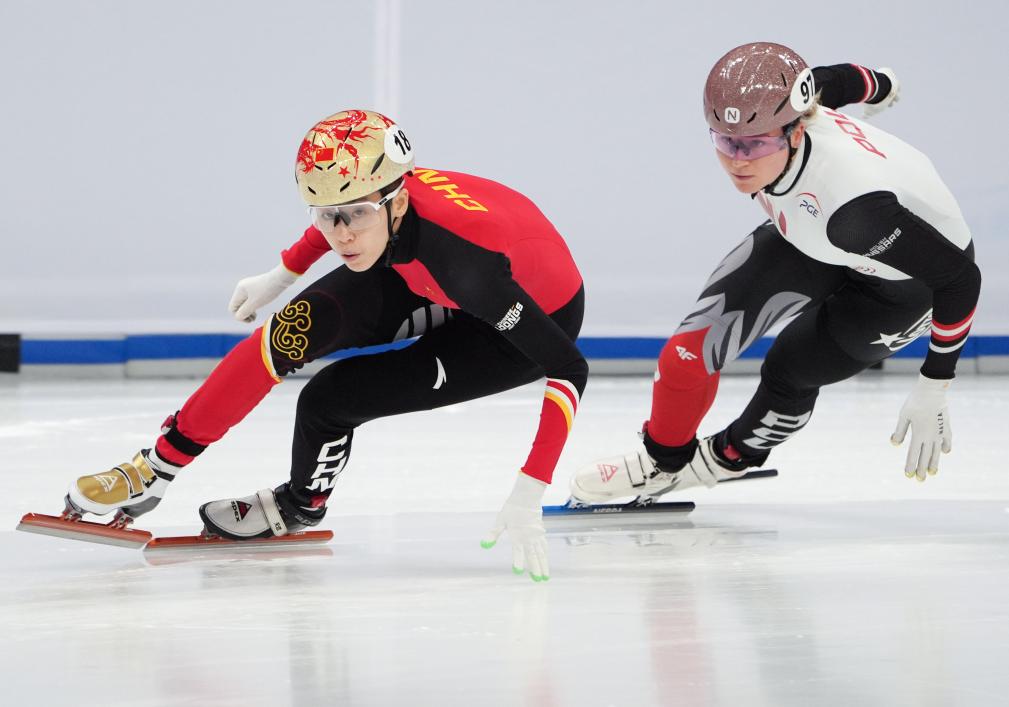12月8日,中國(guó)隊(duì)選手范可新(左)在比賽中。新華社記者 張晨霖 攝