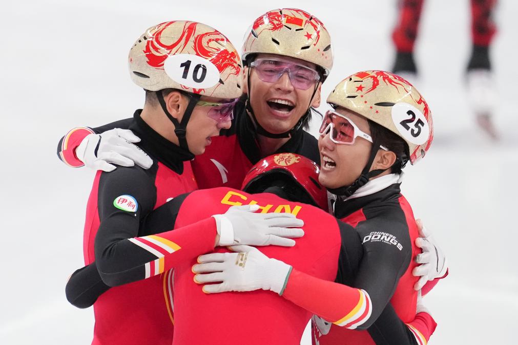 男子5000米接力決賽中,孫龍、李文龍、劉少林、劉少昂代表中國(guó)隊(duì)出戰(zhàn)。賽況激烈,多隊(duì)選手先后摔出賽道,最后一棒交接時(shí),場(chǎng)上只剩中國(guó)和韓國(guó)隊(duì)選手在爭(zhēng)冠之列。中國(guó)隊(duì)借交接之機(jī)超越到第一,韓國(guó)選手在即將進(jìn)入最后一圈時(shí)也摔倒,中國(guó)隊(duì)穩(wěn)穩(wěn)守住優(yōu)勢(shì),以6分42秒551拿下冠軍。