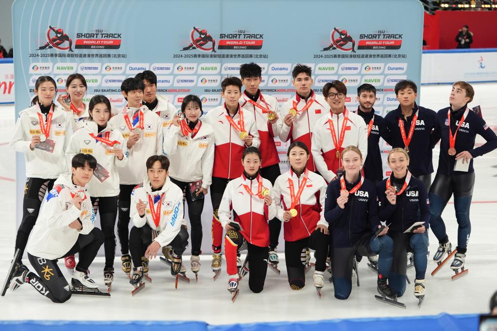 新華社北京12月8日電(記者丁文嫻、曹奕博)2024-2025賽季國(guó)際滑聯(lián)短道速滑世界巡回賽北京站8日在首都體育館決出最后五項(xiàng)冠軍,中國(guó)隊(duì)奪得混合團(tuán)體接力和男子5000米接力兩枚金牌。