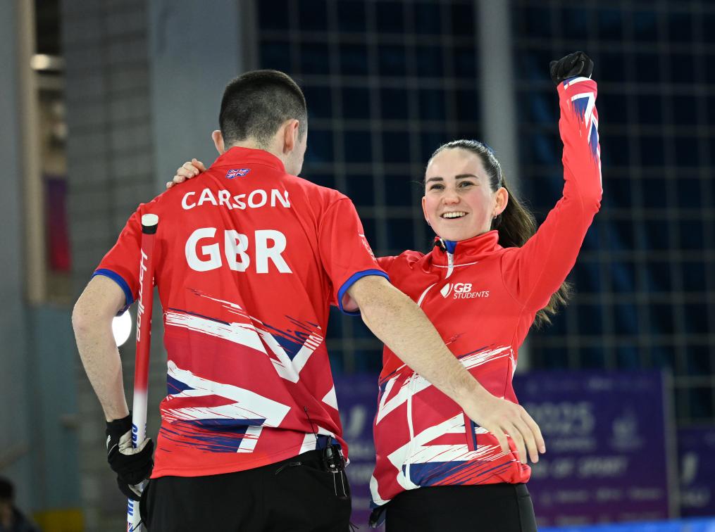 冰壺混雙項目是本屆大冬會首次設(shè)立的比賽項目,吸引了來自8個代表團(tuán)的隊伍參賽。決賽在英國隊和德國隊之間展開。英國組合芒羅和卡森表現(xiàn)出色,以10:8戰(zhàn)勝德國隊,奪得歷史首金。