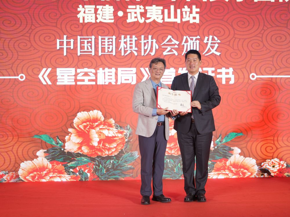 開幕式上還發(fā)布了聯(lián)賽主題曲《星空棋局》。儀式最后,與會(huì)嘉賓灑下手中金粉,勾勒出聯(lián)賽名稱的輪廓,本屆女子圍甲正式開幕。