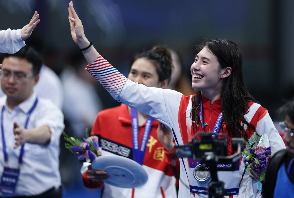 本次比賽,“勞?!庇嘁梨美^續(xù)多線作戰(zhàn)。繼3月在青島的全國春季游泳錦標(biāo)賽上報(bào)名11項(xiàng)比賽并7次奪牌后,本次在深圳她又報(bào)名了7項(xiàng)比賽。當(dāng)晚,她以57秒30收獲100米蝶泳冠軍,以2分08秒67收獲200米個(gè)人混合泳冠軍,包攬第二個(gè)比賽日的女子項(xiàng)目金牌。