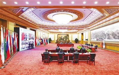 9月17日,國家主席習近平在北京以視頻方式出席上海合作組織成員國元首理事會第二十一次會議并發(fā)表重要講話。新華社記者 申 宏攝