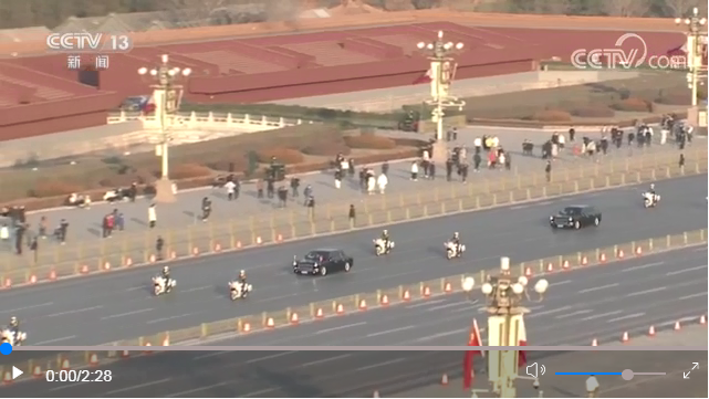 天安門廣場鳴放21響禮炮,禮兵列隊致敬,迎賓小號手鳴禮號。兩國元首登上檢閱臺,軍樂團(tuán)奏中菲兩國國歌。馬科斯在習(xí)近平陪同下檢閱了中國人民解放軍儀仗隊,并觀看分列式。