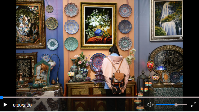 2021年9月12日,在廣西南寧國際會展中心,參觀者在東博會“一帶一路”國際展區(qū)伊朗展臺觀看展品。