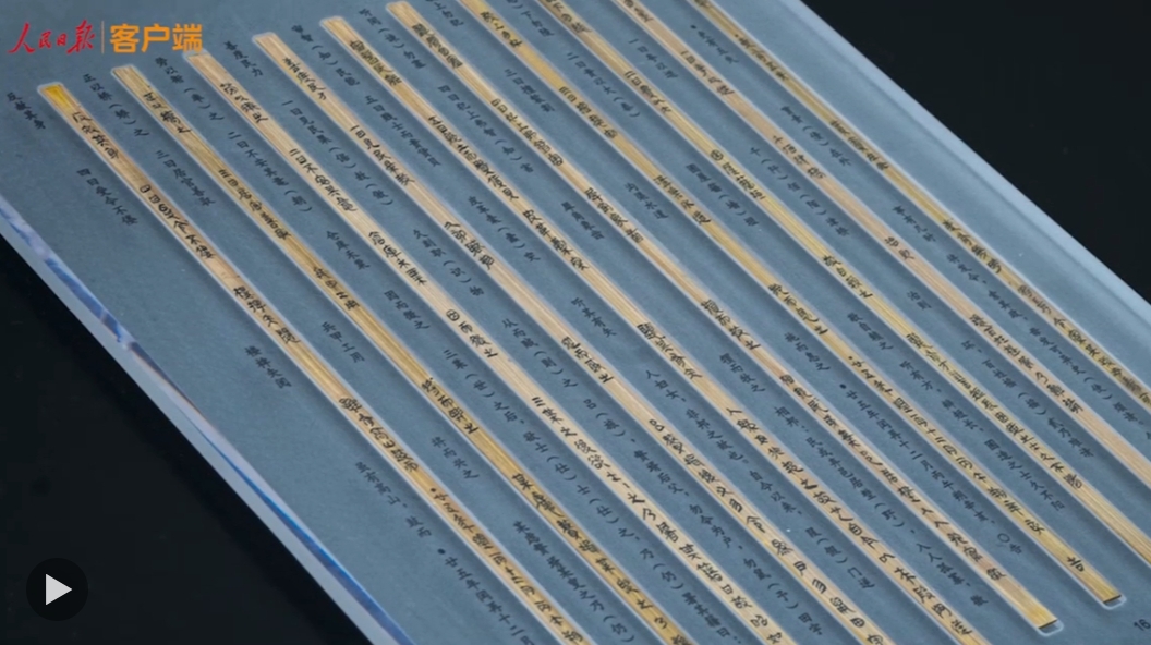 湖北荊州文物保護中心工作人員對修復完成的簡牘進行記錄。