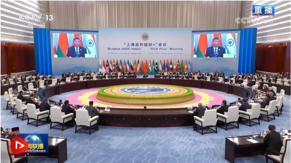 9月1日下午,“上海合作組織+”會議在天津梅江會展中心舉行。國家主席習近平主持會議并發(fā)表題為《凝聚上合力量 完善全球治理》的重要講話。