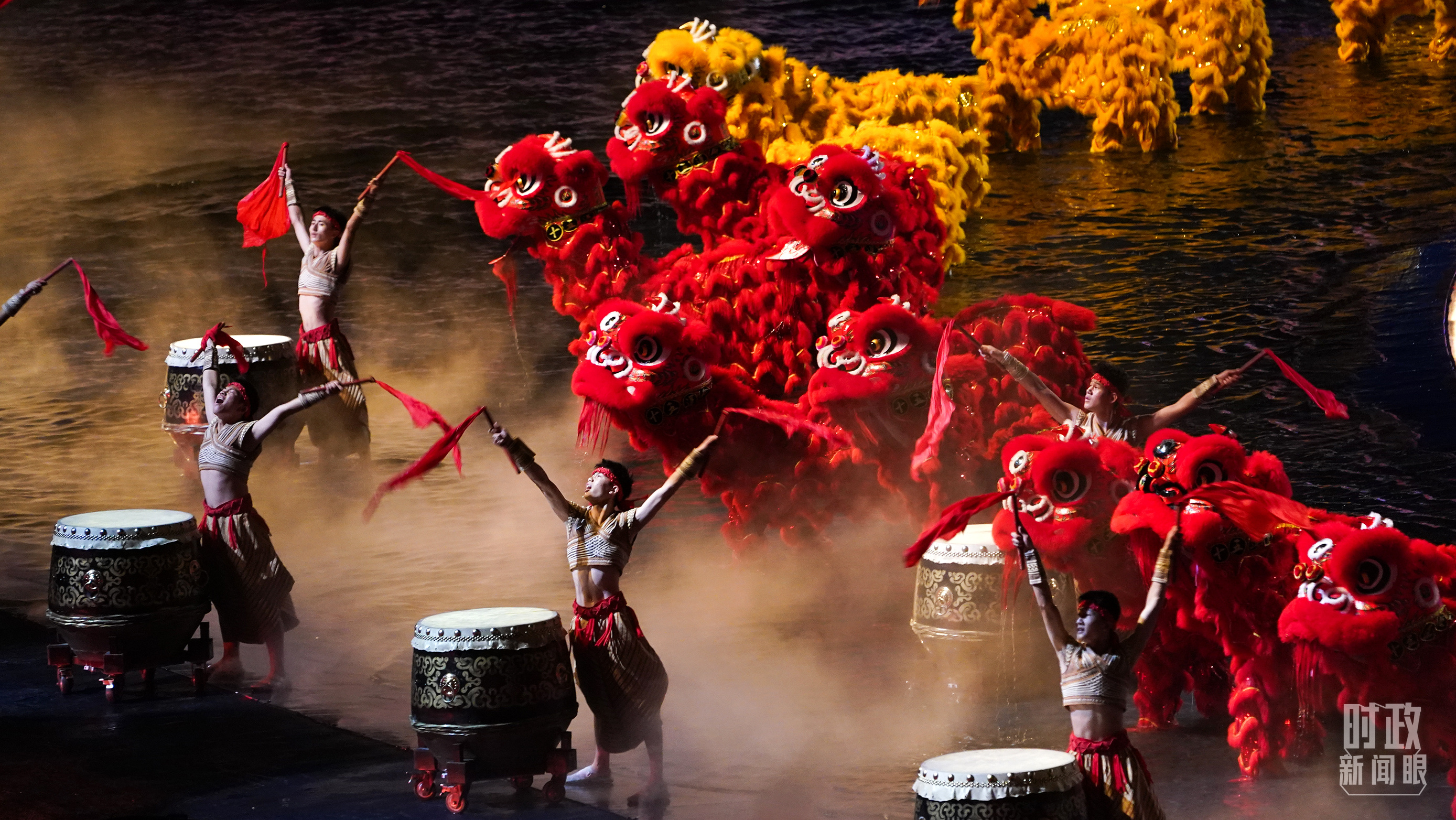粵港澳大灣區(qū)作為全國科技重鎮(zhèn),傳統(tǒng)嶺南文化與前沿科技深度融合成為本屆全運會開幕式的一大亮點。醒獅表演與人工智能技術(shù)相互交融,英歌鑼鼓搭配全息投影,龍舟競渡場景通過AR技術(shù)“劃”入觀眾席,一場“古今對話”的沉浸式藝術(shù)盛宴“燃動”全場?;泟 ⒃伌?、麒麟、廣繡、嵌瓷等璀璨的嶺南文化符號巧妙融入,賦予開幕式獨特的嶺南神韻。