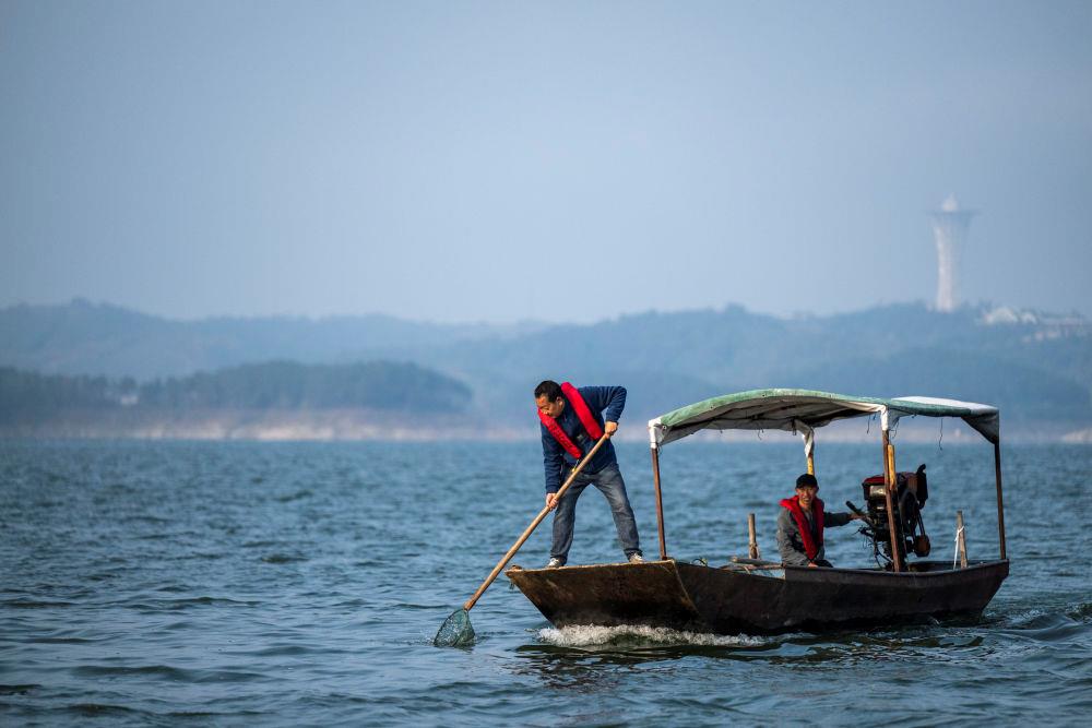 △2024年10月28日,湖北十堰丹江口清漂隊隊員在庫區(qū)進行清漂作業(yè)。2023年,丹江口成立“小水滴”守水護水志愿服務隊,越來越多人加入守水護水行列 。