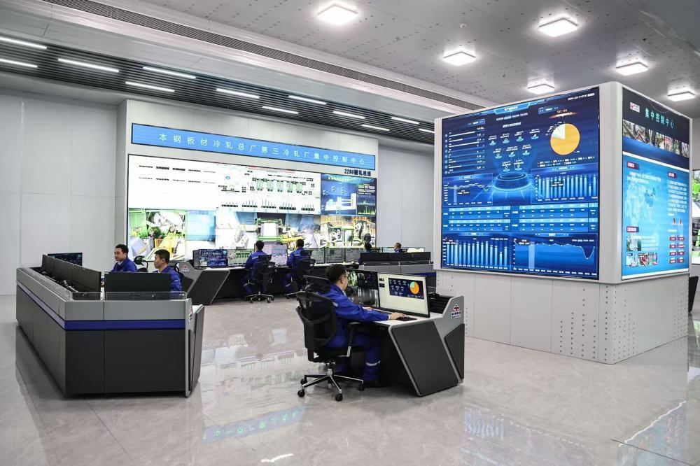 △工作人員在鞍鋼集團所屬的本鋼板材冷軋總廠第三冷軋廠集控中心監(jiān)控設備運行情況。