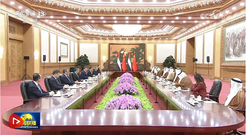 習(xí)近平指出,阿聯(lián)酋是中國(guó)的全面戰(zhàn)略伙伴,中方始終高度重視發(fā)展同阿聯(lián)酋的關(guān)系。在雙方共同努力下,中阿關(guān)系保持健康穩(wěn)定發(fā)展,政治互信不斷加深,務(wù)實(shí)合作穩(wěn)步推進(jìn),人文交流豐富多彩。鞏固和提升中阿關(guān)系是雙方的堅(jiān)定共識(shí),符合兩國(guó)人民期待。中方愿同阿方攜手同行,打造更加穩(wěn)固堅(jiān)韌、富有活力的中阿全面戰(zhàn)略伙伴關(guān)系。雙方要繼續(xù)在涉及彼此核心利益和重大關(guān)切問(wèn)題上相互支持,保持高層交往,筑牢戰(zhàn)略互信。加強(qiáng)發(fā)展戰(zhàn)略對(duì)接,在能源、投資、貿(mào)易、科技等領(lǐng)域深挖潛力,深化互利合作。推動(dòng)教育、民航、旅游等合作取得更大進(jìn)展,密切人文交流,夯實(shí)民意基礎(chǔ)。在聯(lián)合國(guó)、金磚國(guó)家等多邊平臺(tái)增進(jìn)協(xié)調(diào)合作,以中阿關(guān)系的穩(wěn)定性應(yīng)對(duì)國(guó)際和地區(qū)形勢(shì)的不確定性,共同推動(dòng)構(gòu)建人類(lèi)命運(yùn)共同體。